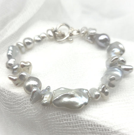 PEARL BRACELET WITH GOLD PLATED NUGGETS