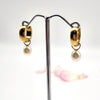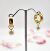 4mm wide huggie style hoops, 13mm wide, gold plated stainless steel featuring detachable small size 7-8mm drop shape freshwater pearls.