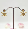 Gold plated pave zirconia starfish stud earrings with round 5mm freshwater pearls.